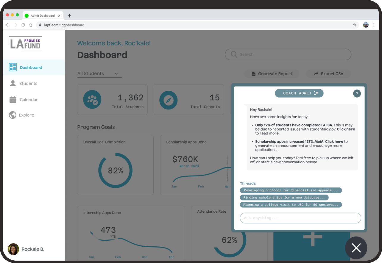 The Admit project set out to tackle this dual challenge, providing students with clarity and structure while equipping administrators with actionable insights to support their communities effectively.